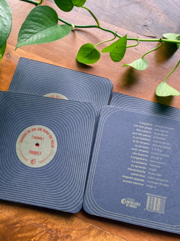 “A poesia de Thiago E é corpo e coisa. Como essa carnação do sol, essa cabeça, aboletada nesse trem (pra que Catende ele vai, assim, tão danado?). Corpo: um corpo animal, insubmisso, molusco e língua viva. Coisa: a traquitana da máquina, essa mesma, a de palavras. Palavras num giro poético, em estado transante, de transe e transação. A língua, quem sabe?, da infância. Thiago E inventa, gira as palavras num caleidoscópio, acessa a língua (de novo ela) desse idioma (poiesis). E conversa com a tradição, há que se dizer. E ri com a tradição, coisa muito importante, aliás, de se fazer na presença dela. O poeta investiga, se lança, assume o risco, faz uma poesia móvel, transparente, inquieta e com vontade de chegar. E chega nas franjas da encosta, o traço, o raio da palavra.” (Texto de Micheliny Verunschk para a orelha do livro)