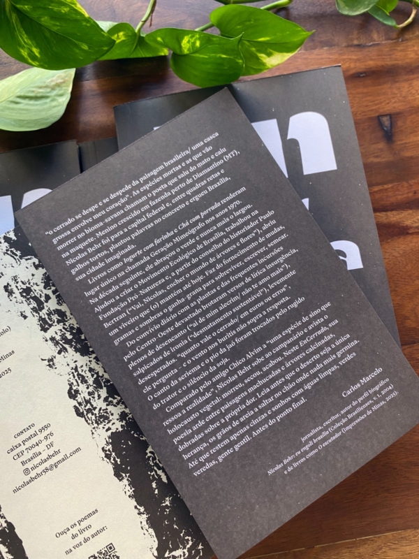 O livro EnCerrado é uma tradução poética de todo o conhecimento acumulado por Nicolas Behr na sua vivência com o nosso rico cerrado. Com uma linguagem clara e direta, que o caracteriza, o poeta alerta contra o fim desse bioma tão estratégico para o Brasil, seja na geração de energia elétrica quanto na produção de alimentos.